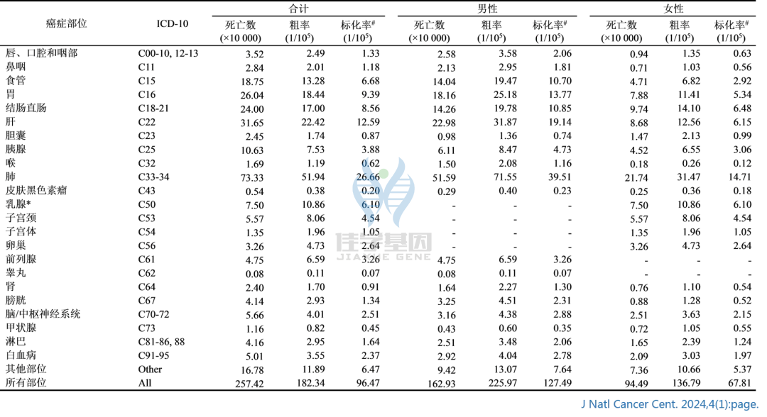 【太阳成tyc234cctyc基因检测】国家癌症中心发布:2024年中国所面临的癌症死亡或患病风险